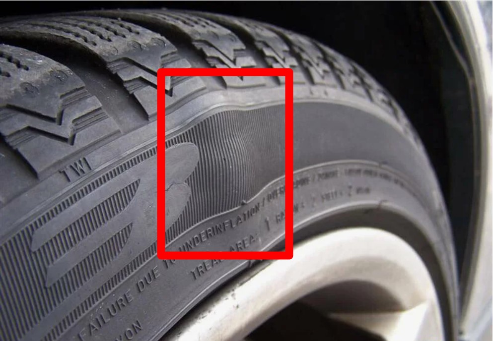 • Торчащие капроновые или стальные нити корда на поверхности или боковинах шин свидетельствуют о незамедлительной необходимости замены шин, ведь их обрыв ведет к разрушению всего каркаса шины