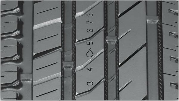 3. Найдите индикатор покрышки: выступ-метка между блоков протектора или цифровой на самом протекторе. Если выступ-индикатор находится уже вровень с самим протектором, или стирается последняя цифра индикатора значит покрышка уже изношена и ее надо срочно заменить